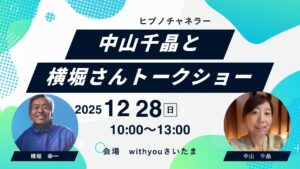 追加日程 6月グループヒプノチャネリング テーマ「今世に私の知らない使命がある」 定員6名様 《 ZOOM開催》満席になりました 2024 5/09 追加日程前後しますが、6月7日に追加開催いたします。 定員6名 参加費11000円 お申込みはこちら イベント イベント Please share if you like it URLをコピーしました! 月刊玉響5月号に連載記事「自分を知る魂の旅」が掲載されました。 第19回7月グループヒプノチャネリング「あなたのマスターに問う」 定員6名様 満席になりました。キャンセル待ち お申込み受付中です。《 ZOOM開催》 関連記事 中山千晶と横堀さんのトークショー開催 第44回12月14日グループヒプノチャネリング「あなたのマスターに問う」 定員5名《 ZOOM開催》満席になりました。ありがとうございます。 第43回10月5日グループヒプノチャネリング「あなたのマスターに問う」 定員5名《 ZOOM開催》満席になりました。ありがとうございます。 第42回8月31日グループヒプノチャネリング「あなたのマスターに問う」 定員5名《 ZOOM開催》満席になりました。ありがとうございます。 第41回7月27日グループヒプノチャネリング「あなたのマスターに問う」 定員5名《 ZOOM開催》 満席になりました。ありがとうございます。 第40回6月21日グループヒプノチャネリング「あなたのマスターに問う」 定員5名《 ZOOM開催》満席になりました。ありがとうございます。 第39回6月7日グループヒプノチャネリング「あなたのマスターに問う」 定員5名《 ZOOM開催》満席になりました。ありがとうございます。 ANOASフェスティバル2025inTOKYOに参加いたします。